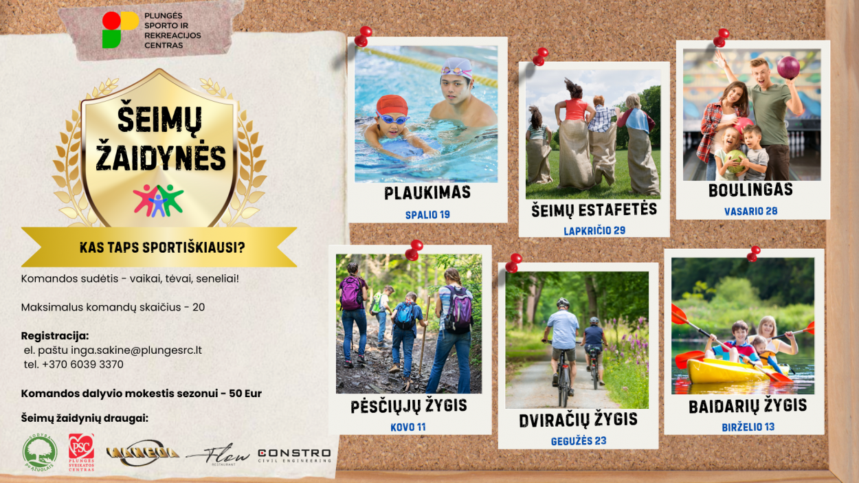 Kviečiame šeimas į linksmą ir aktyvų nuotykį – Šeimų žaidynes, kurios vyks beveik metus ir susidės iš kelių etapų. Tai puiki proga ne tik pajudėti, bet ir sustiprinti šeimos ryšį, patirti bendrystę bei kartu siekti pergalių!